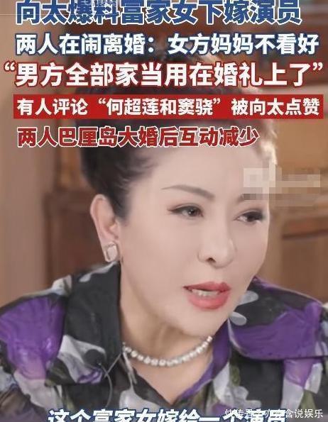 之后,他与何女士的交集日渐稀疏,几乎没什么新作品问世,就连女方家里的重大活动,也难觅他的踪迹。所以没过多久,两人关系不和的消息就传开了,甚至还传出了要离婚的传闻,其实这事儿能闹得这么大,跟向太的爆料脱不了干系。